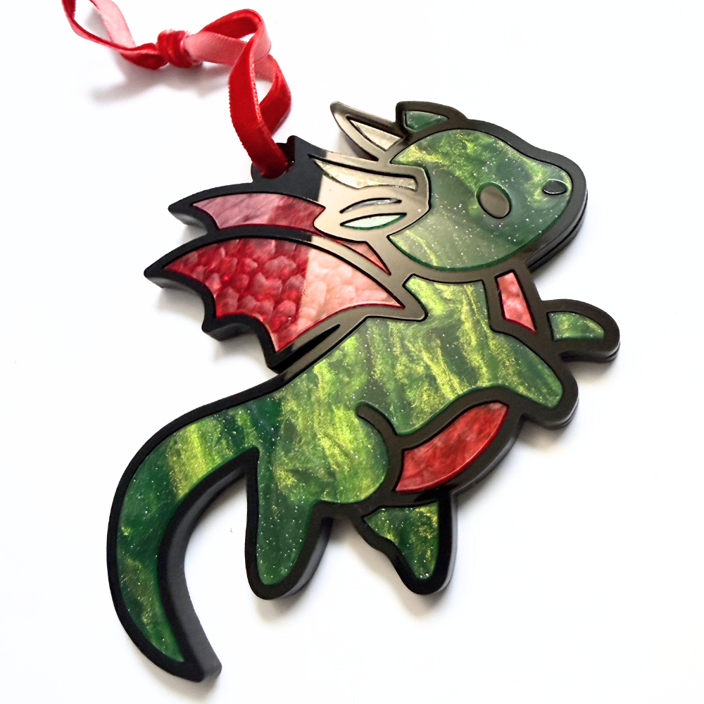 - One Mystery Acrylic Dragon Ornament (approx. 4” in size)